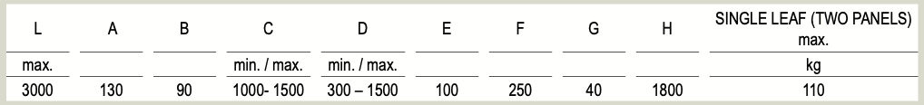 Max längd per sida: 1500mm x 2 blad